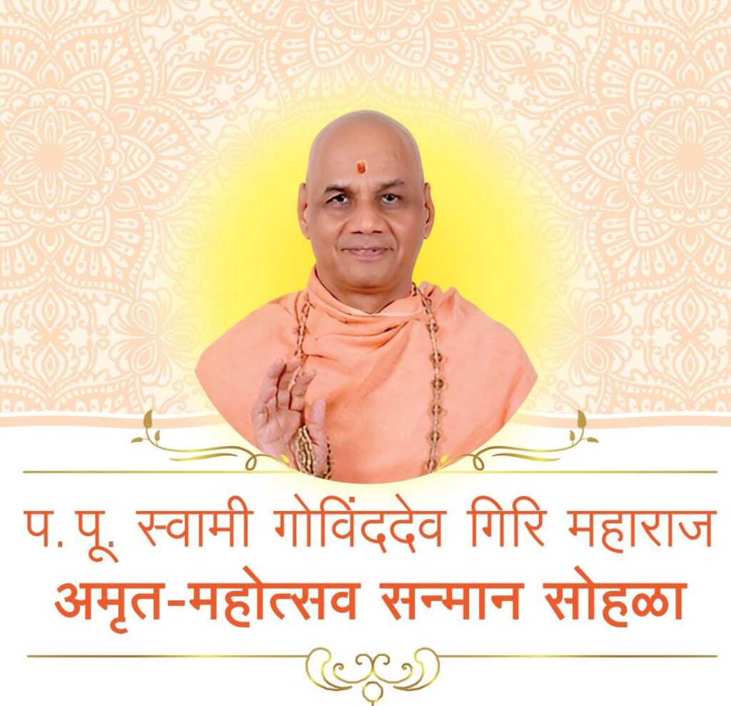 500 वर्षाें पश्चात अयोध्या में निर्मित भव्य श्रीराम मंदिर के निर्माण में प.पू. स्वामी गोविंददेव गिरीजी महाराज का बहुमूल्य योगदान रहा है । इतना ही नहीं 17 वर्ष की आयु से श्रीमद्भागवत, रामायण, महाभारत, ज्ञानेश्वरी, दासबोध, योगवसिष्ठ आदि द्वारा स्वामीजी ने जनशिक्षा का बडा कार्य किया है । कांची कामकोटी पीठ के शंकराचार्य स्वामी श्री जयेंद्र सरस्वतीजी ने स्वामीजी को ‘परमहंस संन्यास’ की दीक्षा प्रदान की । स्वामीजी ने आळंदी (पुणे) में आश्रम स्थापित कर भावी पीढियों के लिए ‘संत श्री ज्ञानेश्वर गुरुकुल’, ‘श्रीकृष्ण सेवानिधी न्यास’, ‘महर्षि वेदव्यास प्रतिष्ठान’ आदि द्वारा राष्ट्र एवं धर्म का बडा कार्य चलाया है । उनके अमृत-महोत्सव सम्मान समारोह के निमित्त विविध क्षेत्र के मान्यवर आनेवाले हैं । इस समारोह में हिन्दू बंधुओं को बडी संख्या में उपस्थित रहने का आवाहन ‘स्वातंत्र्यवीर सावरकर राष्ट्रीय स्मारक’ एवं ‘हिन्दू जनजागृति समिति’ द्वारा किया गया है । इस समारोह की अधिक जानकारी के लिए 8080208958 पर संपर्क करें ।