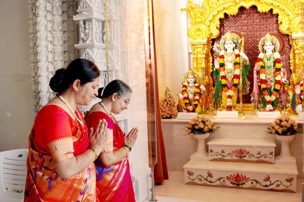 4. Swami Narayan Darshan_AbuDhabi – अबू धाबी के बीएपीएस हिंदू मंदिर में श्री राम और माता सीता के दर्शन करते हुए श्री सत्शक्ति (श्रीमती) बिंदा सिंगबाळ एवं श्री चित्शक्ति (श्रीमती) अंजली गाडगीळ