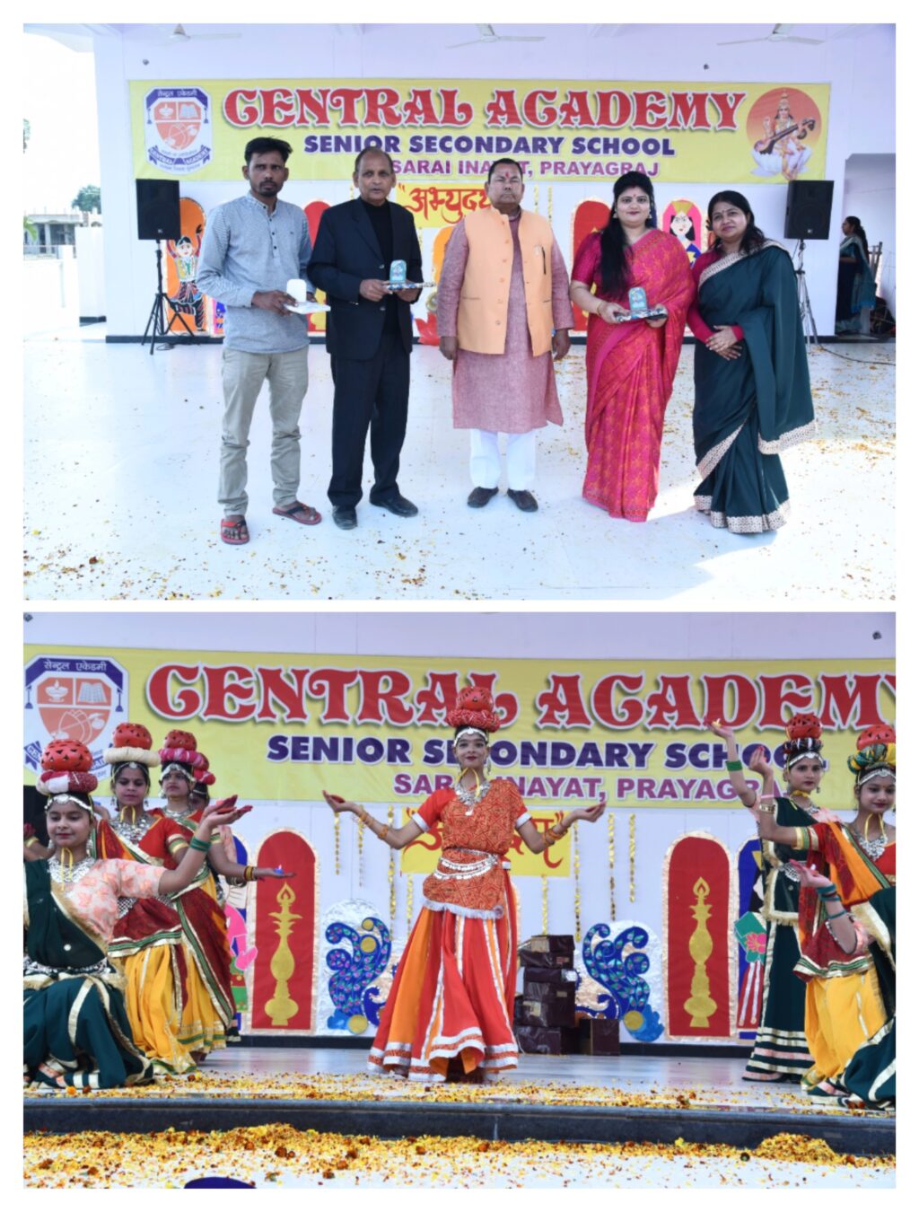 सेंट्रल एकेडमी, सराय इनायत शाखा में 25 अक्टूबर 2024 को ग्रैन्ड पैरेन्ड डे विद्यालय के दूसरे वार्षिकोत्सव ”अभ्युदय” का आयोजन किया गया | इस अवसर पर मुख्य अतिथि के रूप में श्रृंगवेरपुर तीर्थ के पीठाधीश्वर आचार्य रामानुजाचार्य जी उपस्थित रहे | इसके अतिरिक्त कार्यक्रम में आदरणीय डयरेक्टर सर श्री एस०के० तीवारी जी, सराय इनायत शाखा की प्रधानाचार्या श्रीमती ॠचा त्रिपाठी जी, क्षूंसी शाखा के प्रधानाचार्य श्री आनंद पाण्डेय जी, पैरेन्टस प्रइड की प्रधानाचार्या श्रीमती दीप्ती मिश्रा, श्री शंकरदेव त्रिपाठी जी , डॉ उमेश मिश्रा जी, श्री रजनीश तिवारी जी अभिभावक और बच्चो के दादा-दादी, नाना-नानी तथा सराय इनायत शाखा के सभी अध्यापक-अध्यापिका और बच्चे उपस्थित रहे | इस अवसर पर सर्वप्रथम माँ सरस्वती की वन्दना तथा पूजा की गयी फिर मुख्य अतिथि महोदय ने दीप जलाकर कार्यक्रम की शुरूआत की | फिर बच्चों ने स्वागत नृत्य द्वारा सभी अतिथियों का स्वागत किया | कार्यक्रम में आदरणीय डयरेक्टर सर द्वारा ग्रैन्ड पैरेन्ड डे को आॕवार्ड देकर सम्मानित किया गया | इसके अतिरिक्त बहुत से मनोरंजक और सांस्कृतिक कार्यक्रम प्रस्तुत किये गये | अयोध्या में राम मंदिर का निर्माण और प्राण प्रतिष्ठा के ऊपर बच्चों ने कार सेवा से लेकर वर्तमान समय के मंदिर निर्माण तक की एक झांकी प्रस्तुत की | इस कार्यक्रम से प्रसन्न होकर आदरणीय आचार्य जी ने बच्चों को ग्यारह हजार रुपये का नकद पुरस्कार प्रदान दिया इस महत्वपूर्ण अवसर पर आए हुए अभिभावकों में से एक अभिभावक ने इक्यावन सौ रुपये का नगद पुरस्कार प्रदान किया | आदरणीय डयरेक्टर सर ने मुख्य अतिथि महोदय तथा सभी उपस्थित सदस्यों को बहुत-बहुत बधाई और धन्यवाद दिया | उन्होंने कहा यदि हम अपने बच्चों को अच्छी शिक्षा दे तो वह आगे चलकर दुनिया में हमारा और अपना मार्गदर्शन अच्छी प्रकार कर सकते हैं | सभी सदस्य आदरणीय डयरेक्टर सर की बातों से काफी प्रभावित हुऐ | सराय इनायत शाखा की प्रधानाचार्या ॠचा त्रिपाठी जी ने कार्यक्रम में आये हुये सभी सदस्यों का स्वागत और आभार प्रकट किया तथा विद्यालय और उसकी बढती हुई लोकप्रियता और शिक्षा की गुणवत्ता के विषय में सबको समझाया | आदरणीय प्रधानाचार्या की बातों से लोग काफी प्रभावित हुऐ | सभी दर्शकों ने कार्यक्रम में बहुत उत्साह दिखाया | लोगों को पता ही नही चला की कब दो घन्टे बीत गए | अंत में सराय इनायत शाखा की प्रधानाचार्या आदरणीय ॠचा त्रिपाठी जी ने आयोजन में आये हुये सदस्यों को बहुत-बहुत धन्यवाद दिया तथा कार्यक्रम में उपस्थित होने के लिए सभी का आभार व्यक्त किया |