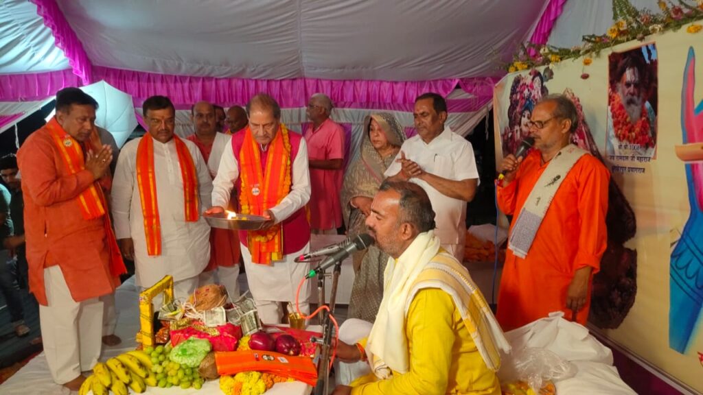 बारा विधानसभा के अतरी कसौटा गांव के प्रतिष्ठित स्व.पं.रामेश्वर शुक्ल उर्फ बरसाती लाल के परिवार जनों द्वारा आयोजित श्रीमद् भागवत कथा के पूर्णाहुति एवं विशाल भंडारा कार्यक्रम में वरिष्ठ भाजपा नेता व समाजसेवी डॉ संगम मिश्र सम्मिलित हुए।व्यास पीठ पर विराजमान विख्यात कथा वाचक डॉ ध्रुव नारायण मिश्र जी ने मंच से कथा में उपस्थित श्रोताओं से डॉ संगम मिश्र का परिचय कराते हुए कहा आप मेरे सगे दादा हैं। व्यास पीठ पर विराजमान मुख्य कथा वाचक डॉ ध्रुव मिश्र ने डॉ संगम मिश्र के विषय में बताया कि आप लोकसभा इलाहाबाद – 52 से भारतीय जनता पार्टी से चुनाव लड़ने की तैयारी कर रहे हैं।डॉ संगम मिश्र आप लोगों के भी गुरु महाराज हैं।