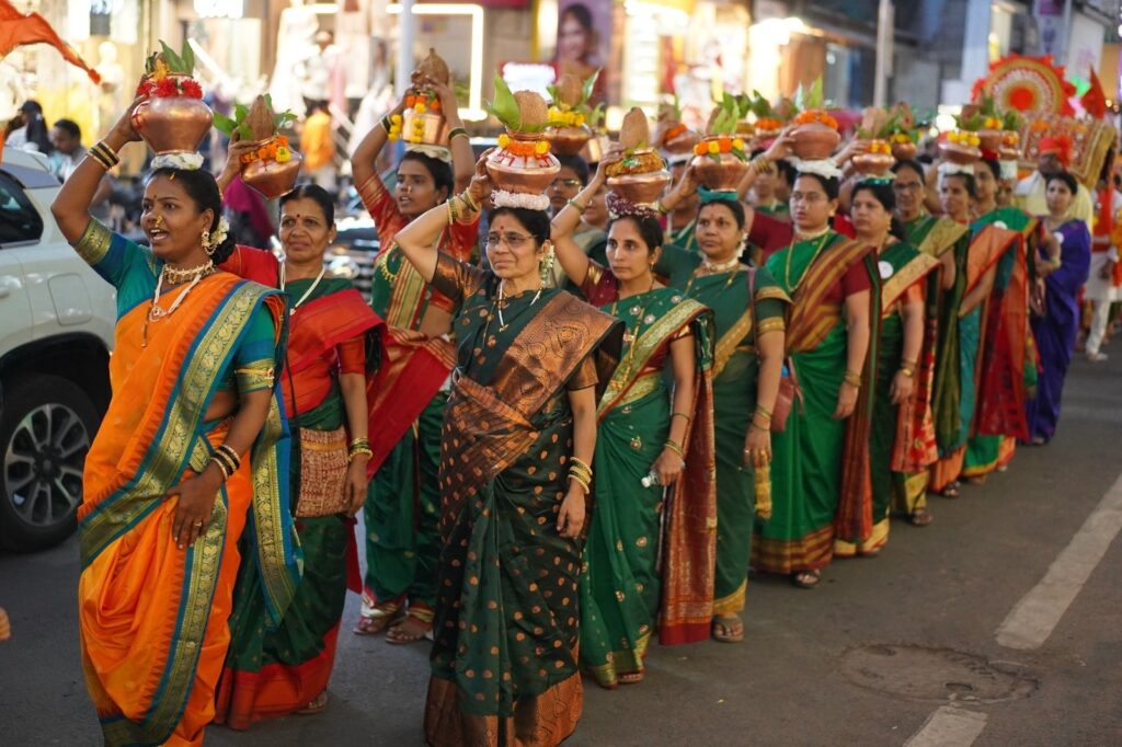 भगवे ध्वज, मंजीरे-मृदुंग लिए वारकरी, रणरागिनियों के स्वरक्षा प्रात्याक्षिक, पारंपारिक वेशभूषा, नौ गज की साडी में सुहागिनें बनी दिंडी का आकर्षण !