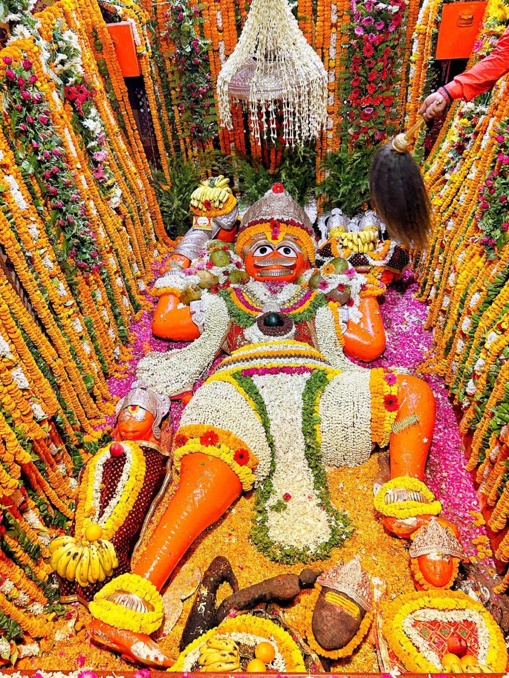 ज्येष्ठ माह के अंतिम बड़े मंगल पर श्री बड़े हनुमान जी का फूलों से भव्य शृंगार