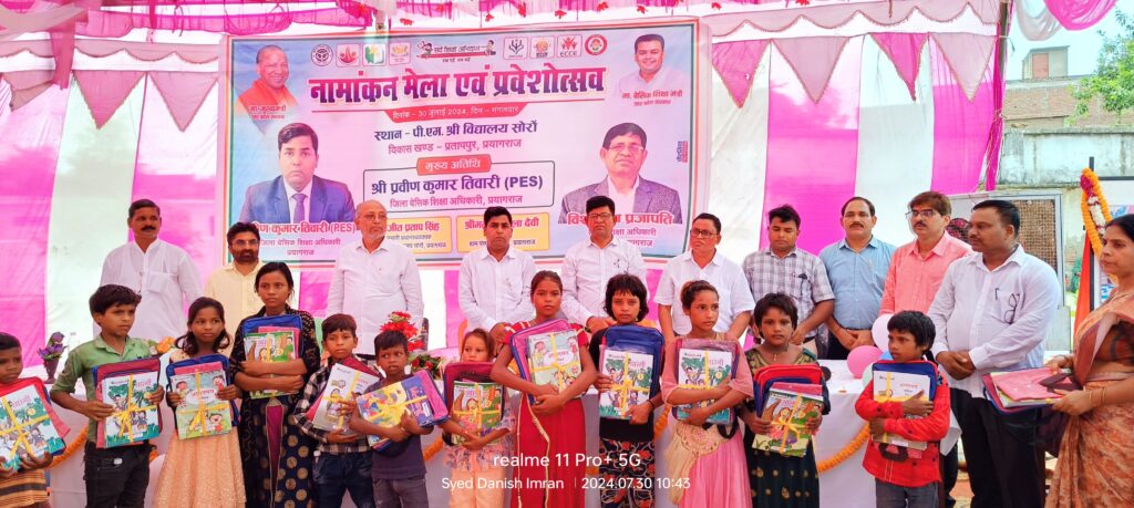 प्रयागराज / पीएम श्री उच्च प्रा०वि० सोरांव में नामांकन मेला एवं प्रवेशोत्सव सम्पन्न हुआ जिसके मुख्य अतिथि ज़िला बेसिक शिक्षा अधिकारी प्रवीण कुमार तिवारी रहे। कार्यक्रम का शुभारंभ मां सरस्वती के चित्र पर माल्यार्पण, सरस्वती वंदना एवं स्वागत गीत बच्चों द्वारा गाकर किया गया। ग्राम पंचायत सोरों में निवास करने वाले मुसहर जाति के कभी स्कूल न जाने वाले बच्चों के अभिभावकों को प्रेरित कर नामांकन कराया गया । बी एस ए प्रवीण कुमार तिवारी द्वारा स्वयं अपने हाथों से नामांकन किया गया जिसे देखकर ग्रामवासियों में ख़ुशी की लहर दौड़ गई। वहीं उन्होंने अपने संबोधन में कहा कि शिक्षा समाज की रीढ़ है, जिसकी पहुंच समाज के प्रत्येक वंचित तबके तक सरल एवं सुलभ हो, विभाग एवं शासन की ऐसी ही मंशा है जिसको धरातल पर उतारने का पुनीत कार्य पी एम श्री उच्च प्रा०वि०विद्यालय सोरों के अध्यापकों एवं मैथिली ग़रीब कल्याण समिति के सदस्यों ने मिलकर किया जिसके लिए ये सभी बधाई के पात्र हैं। तदोपरांत बी एस ए एवं खण्ड शिक्षा अधिकारी प्रतापपुर विश्वनाथ प्रजापति व खण्ड शिक्षा अधिकारी फूलपुर प्रभाशंकर पांडेय एवं ग्राम प्रधानपति राजित राम यादव द्वारा मुसहर जाति के बच्चों को पुस्तकों का सेट, यूनिफॉर्म, बैग, कॉपी, कलम वितरित किया गया। कार्यक्रम के मुख्य अतिथि प्रवीण कुमार तिवारी, विशिष्ट अतिथि खण्ड शिक्षा अधिकारी फूलपुर प्रभाशंकर पांडे जी एवं विकास खण्ड प्रतापपुर के मुखिया विश्वनाथ प्रजापति, ग्राम प्रधानपति राजित राम को मेज़बानी कर रहे पी एम श्री उच्च प्रा० वि० सोरों के इं०प्र०अ० अजीत प्रताप सिंह एवं उनकी टीम द्वारा बुके, अंगवस्त्रम एवं स्मृतिचिह्न भेंट किया गया। मैथिली ग़रीब कल्याण समिति के पदाधिकारी बालकेश्वर प्रजापति, रमेश सरोज, संदीप एवं राजेश सरोज व अन्य सदस्यों को भी बुके, अंगवस्त्रम आदि भेंटकर इस पुनीत कार्य हेतु सम्मानित किया गया। कार्यक्रम का शानदार संचालन वरिष्ट ए आर पी सत्येन्द्र द्विवेदी ने किया। कार्यक्रम से पूर्व सुबह ज़िला बेसिक शिक्षा अधिकारी प्रयागराज, खण्ड शिक्षा अधिकारी प्रतापपुर एवं मैथिली ग़रीब कल्याण समिति के सदस्यगण व इंचार्ज प्र०अ० मुसहर बस्ती में स्वयं जाकर बच्चों एवं अभिभावकों से मिलकर शिक्षा एवं स्कूल चलो अभियान के प्रति जागरूक किया एवं अपने समक्ष बच्चों के बाल भी कटवाए एवं उन्हें स्वच्छता, स्वास्थ्य एवं शिक्षा के प्रति जागरूक किया। कार्यक्रम में जू० शि० संघ के ज़िला अध्यक्ष विनोद पांडेय, ब्लॉक अध्यक्ष अजीत प्रताप सिंह, ब्लॉक मंत्री दिलीप कुमार यादव, ब्लॉक अध्यक्ष प्रा० शि० स० प्रतापपुर डॉ हरीशचंद्र, मंत्री अतीक अहमद, अटेवा प्रदेश प्रभारी आई टी सेल सैय्यद दानिश इ
