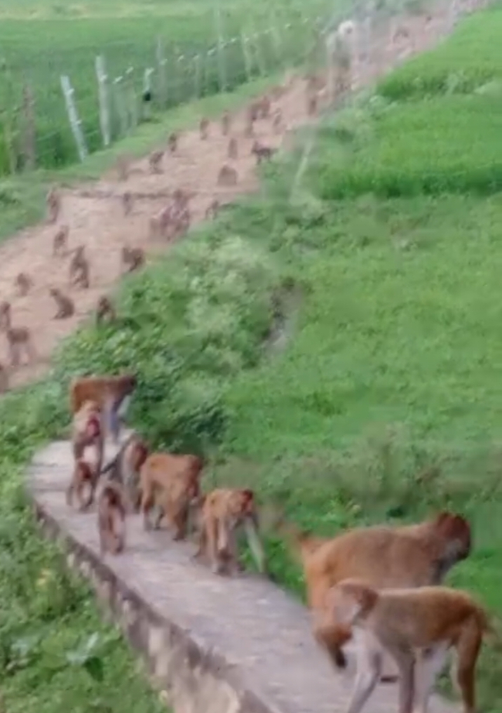 लालापुर प्रयागराज ग्राम सभा नौडीहा तरहार में सुबह के समय गांव की तरफ जाते हुए बंदरों का समूह यह बंदर सारी फसलों को कर रहे चौपट इनकी वजह से ग्राम सभा नौडीहा तरहार में सब्जी कि खेती नहीं हो पाती लोग आवारा जानवरो से परेसान है यहाँ के लोग बंदर और आवारा जानवर दोनों से परेसान है तब भी यहाँ बाडा नही बनवाया गया है एक मजबूर किसान कैसे अपना जीवन यापन करे