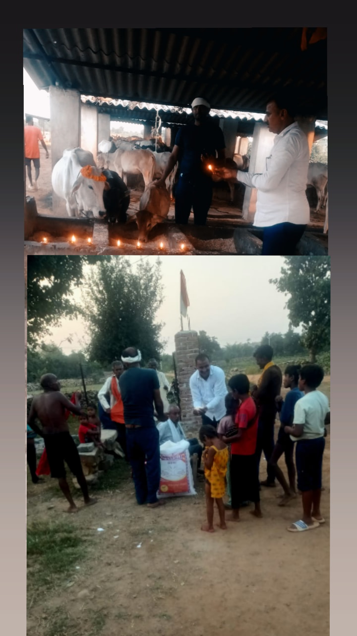 ग्राम पंचायत धारा में दीपावली के शुभ अवसर पर प्रधान पति मनोज मिश्रा द्वारा गौशाला में गौ माता की भव्य पूजा अर्चना कर आसपास के गरीब मजदूर व असहाय लोगों को मिठाई बाटा गौशाला में उपस्थित तकरीबन 100 लोगों की मौजूदगी थी ग्राम प्रधान के द्वारा या कार्य देखकर लोगों में खुशी झलकी लोगों को कहना है कि इस तरह के प्रधान हर गांव में होना चाहिए जो गौशाला के साथ-साथ गांव के लोगों का भी ख्याल रखें ग्राम प्रधान के साथ गांव की गड़मान्य लोग मौजूद थे