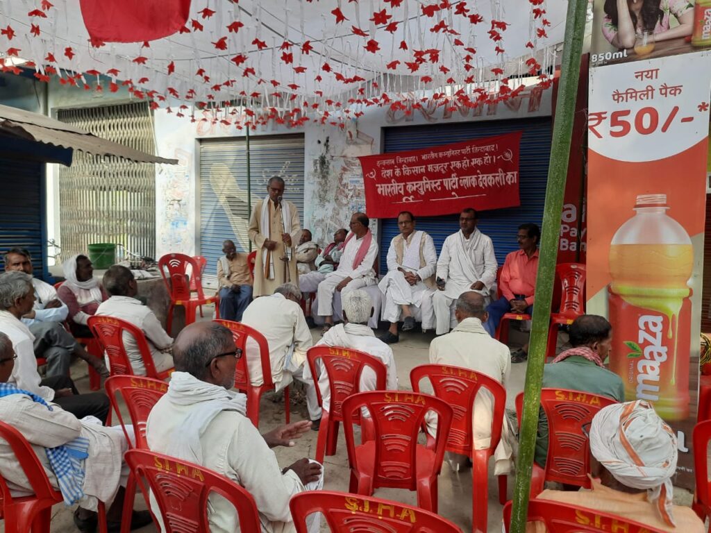 नंदगंज (गाजीपुर)। भारतीय कम्युनिस्ट पार्टी एवं  किसान  सभा की सार्वजानिक  सभा नंदगंज शादियाबाद मोड़ पर संपन्न हुई।इसे सम्बोधित करते हुए किसान  सभा के राष्ट्रीय सचिव पूर्व विधायक राजेंद्र यादव ने कहा कि  सरकार की नीतियाँ किसान  विरोधी है।जिसके चलते उनका जीवन दुष्कर हो गया है।खेती,किसानी,गावं,बर्वादी की ओर बढ़ रहे है।खेती लागत महँगी है।उत्पादन सस्ता है।सरकार की कॉर्पोरेट परस्त नीतियों से किसानो,गावों की अर्थव्यवस्था चौपट हो रही है।काले  कृषि कानूनों के चलते दिल्ली बॉर्डर पर किसानो ने 380 दिन  लगातार आंदोलन किया।मजबूरन सरकार ने उनको वापस किया और किसानो से एम एस  पी कानूनी गारंटी,स्वामीनाथन आयोग की रिपोर्ट लागु करने,आंदोलनकारियों से मुकदमे वापस करने,मृतक किसानो को मुआवाजा देने आदि मुद्दों पर समझौता किया।जिसे आज तक लागू नही  किया गया। इसीलिए 26 नवम्बर को राष्ट्रव्यापी आंदोलन जिला मुख्यालयों पर होगा जिसमें भारी संख्या में किसानो से भाग लेने की अपील है।सभा में भा क पा राज्य कार्यकारिणी सदस्य अमेरिका सिंह यादव ने कहा कि यह सरकार अलोकतान्त्रिक है।आंदोलनकारियों की जायज मांगो को भी नहींं  मानती है।नंदगंज चीनी मिल को आज तक नही  खोला गया। बढ़ौरा  सूती मिल भी नही  चालू  हुई। गाजीपुर जनपद को उद्योगो से अच्छादित करने की आवश्यकता है।यदि  ऐसा नही  होता है तो संघर्ष जोरदार होगा।सभा में पार्टी जिला सचिव जनार्दन राम ने कहा कि  संगठन को मजबूत करके सरकार की जन विरोधी नीतियों के खिलाफ व्यापक आंदोलन छेड़ना होगा। इसे पार्टी सह सचिव ईश्वरलाल गुप्ता,समाजवादी पार्टी के नेता सूरज राम बागी, रामराज बिंद,लौटूबिंद,मोहन प्रसाद,आदि लोगो ने विचार प्रगट  किया।अध्यक्षता चंद्रशेखर वर्मा एवं  संचालन ब्लॉक मंत्री बच्चेलाल यादव ने किया।