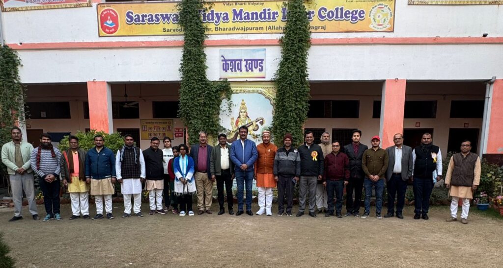 प्रयागराज / विवेकानंद जी की जयंती की पूर्व संध्या पर विद्यालय के सरस्वती सभागार में पूर्वछात्र परिषद सम्मेलन का आयोजन किया गया। कार्यक्रम का शुभारम्भ मां सरस्वती के चरणों में पुष्पार्चन एवं दीप प्रज्ज्वलन से हुआ। कार्यक्रम का संचालन एवं परिचय पूर्व छात्र परिषद प्रमुख आचार्य श्री लोकेश कुमार शर्मा जी ने किया। विद्यालय के प्रधानाचार्य सुरेश चन्द्र तिवारी ने पूर्वछात्र परिषद की प्रस्ताव को रखते हुए विद्या भारती के विद्यालयों में पूर्व छात्र परिषद की उपदेयता एवं प्रासंगिकता को रेखांकित करते हुए संचालन की प्रविधियों की जानकारी दी। कार्यक्रम में पूर्वछात्र परिषद के अध्यक्ष सन्तोष सिंह, मंत्री डा० संजय तिवारी (प्लास्टिक सर्जन), कोषाध्यक्ष नित्यानंद पाण्डेय, सचिव डॉ० सौरभ कुमार शर्मा (प्रधानाध्यापक), डा० सुनील निगम (नेत्र विशेषज्ञ), उपाध्यक्ष विनय कुमार त्रिपाठी एवं परिषद के अन्य पदाधिकारी और अन्य सदस्य उपस्थित रहें। कार्यक्रम के अंत में पूर्व छात्र परिषद के पदाधिकारीयों द्वारा विद्यालय का भौतिक विकास एवं शैक्षिक उन्नयन कैसे किया जाए इस पर चर्चा कर निर्णय लिया गया।कार्यक्रम के अन्त में विद्यालय की आचार्या ज्योति सिंह ने पूर्व छात्र परिषद के उपस्थित सभी भैया/बहनों का विद्यालय परिवार की ओर से आभार ज्ञापन किया। इस अवसर पर विद्यालय के सभी आचार्य बंधु एवं भगिनी व कर्मचारी उपस्थित रहे।