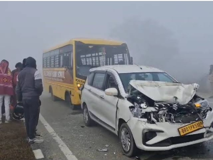 बताया जा रहा है कि कोहरे के कारण सड़क पर विजिबिलिटी बहुत कम थी। इसी दौरान एक ट्रक की अचानक गति धीमी हो गई जिसे देखकर पीछे आ रही कार ने ब्रेक लगाया। पीछे से आ रही स्कूली बस कार से टकरा गई, जिससे कार आगे खड़े ट्रक में जा घुसी। इस बीच एक टूरिस्ट मिनी बस भी इन वाहनों से टकरा गई। घटना की सूचना मिलते ही स्थानीय ग्रामीण मौके पर पहुंच कर घायलों की मदद करने लगे । घायलों को तुरंत स्थानीय अस्पताल में भेजा गया। दुर्घटना में शामिल यात्रियों में बिहार के भी श्रद्धालु थे, जो प्रयागराज में माघ कुंभ स्नान कर पटना लौट रहे थे। एक यात्री ने बताया कि कोहरे के कारण सड़क पर कुछ भी स्पष्ट नहीं दिख रहा था जिसकी वजह से यह दुर्घटना हुई।