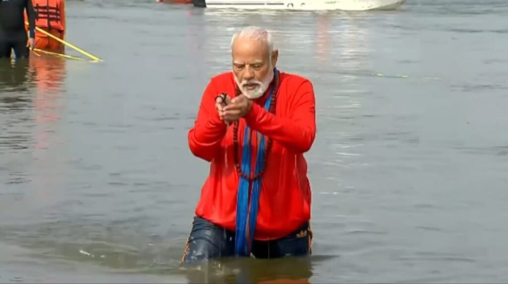 महाकुम्भ में प्रधानमंत्री नरेंद्र मोदी ने पूरी श्रद्धा के साथ किया त्रिवेणी संगम में स्नान