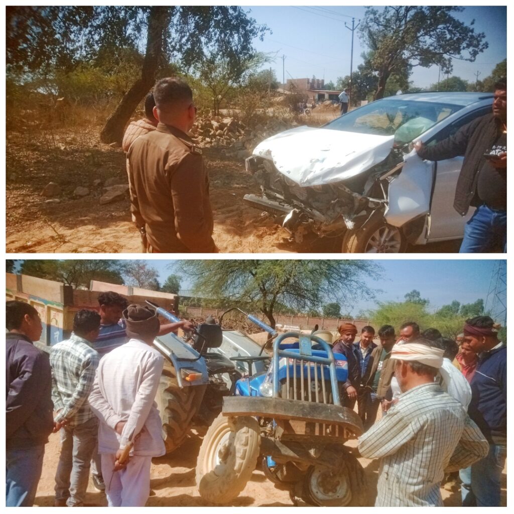 कार और ट्रैक्टर में हुई जोरदार भिड़ंत दोनों वाहनों के उड़े परखच्चे