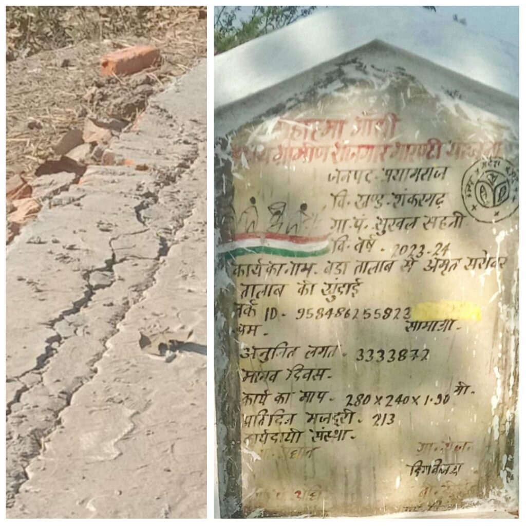 निर्माण होते ही भ्रष्टाचार की भेंट चढ़ा सुरवल साहनी का अमृत सरोवर तालाब।