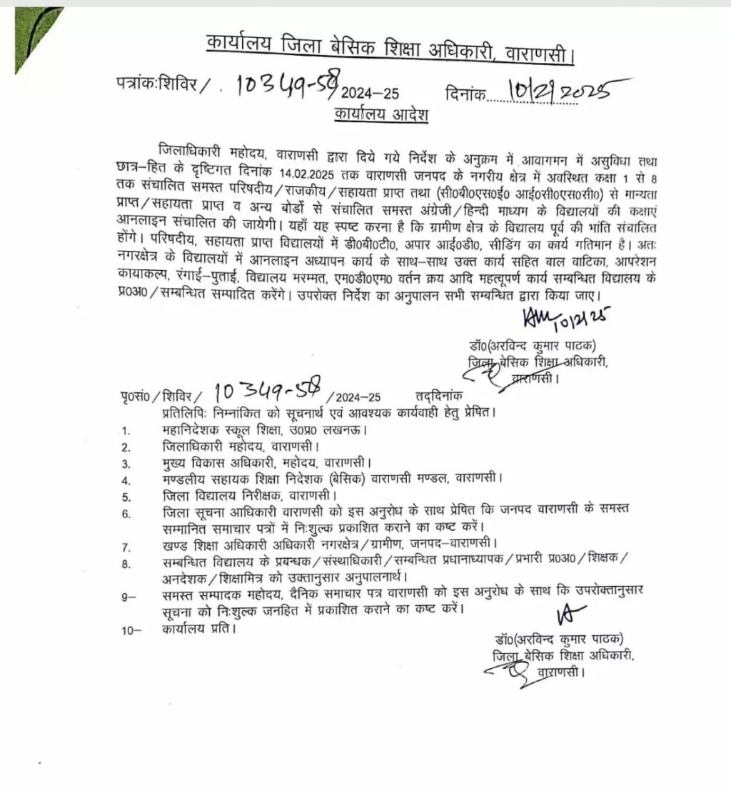 वाराणसी में फिर से स्कूल बंद, अब इस तारीख तक चलेंगी ऑनलाइन क्लासेस, महाकुंभ की भीड़ को देखते हुए लिया गया निर्णय