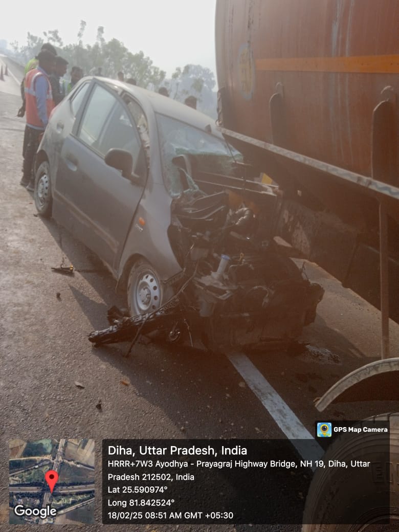 कोखराज हंडिया नेशनल हाईवे पर आज सुबह लगभग नौ बजे बेरूई गांव के सामने एक कार पर सवार चार श्रद्धालु महाकुंभ स्नान करके वापस कानपुर की तरह जाते समय हाईवे किनारे खड़े टैंकर में पीछे से टकरा गए। जिससे कार सवार सभी श्रद्धालु घायल हो गए। मौके पर उपस्थित स्थानीय लोगों ने एंबुलेंस की सहायता से घायलों को अस्पताल भिजवाया । कार सवार 27 वर्षीय राजा पुत्र मनोज कुमार साहा निवासी बावन गंज जनपद कटिहार बिहार व 58 वर्षीय मनोज कुमार पुत्र अजय कुमार निवासी उपरोक्त ,रूबी बेबी पत्नी मनोज कुमार साहा उम्र लगभग 55 वर्ष ,गणेश पुत्र हेमचंद्र निवासी ग्रैंड आईवा सेक्टर 103 फ्लैट नंबर 401 दिल्ली गंभीर रूप से घायल हो गए, हास्पिटल ले जाते समय मनोज कुमार एवं राजा कुमार की मौत हो गई।रूबी बेबी का इलाज सीएचसी बनी में चल रहा है,गणेश कुमार का इलाज सीएचसी सोरांव में चल रहा है। मरने वाले वाले दोनों लोग पिता पुत्र थे ।