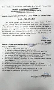 दिल्ली विधानसभा अध्यक्ष विजेंद्र गुप्ता ने आतिशी को विपक्ष के नेता के रूप में मान्यता दी।