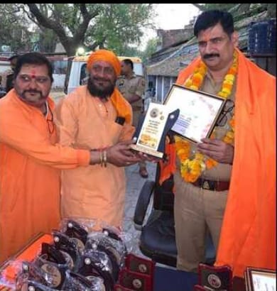 शनि धाम ने पुलिसकर्मियों को किया सम्मानित