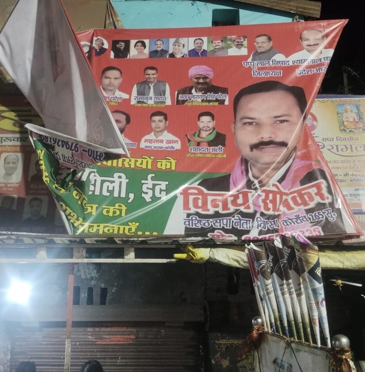कोरांव प्रयागराज समाजवादी पार्टी के नेताओं के द्वारा कोरांव मुख्य चौराहे पर मकान मालिक के सहमत से लगाए गए होली ईद के शुभकामना संदेश के बैनर को अज्ञात अराजक तत्वों के द्वारा दिन मंगलवार को फाड़ दिया गया जैसे ही इसकी जानकारी सपा नेताओं को हुई तो मुख्यमंत्री पोर्टल पर शिकायत दर्ज कराते हुए अशोभनीय कृत्य करने वालों की भर्त्सना करते हुए पुलिस प्रशासन से कड़ी कार्यवाही की मांग किया।