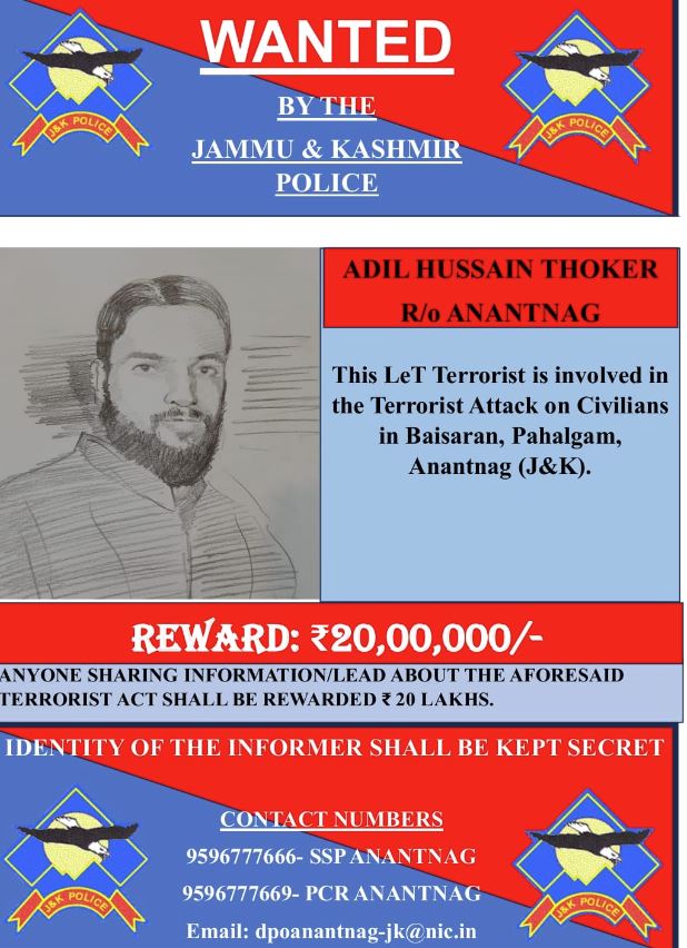 उपरोक्त आतंकवादी कृत्य के बारे में सूचना/सुराग साझा करने वाले को 20 लाख रुपये का इनाम दिया जाएगा।