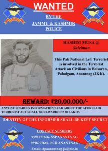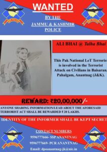 यह पाक राष्ट्रीय लश्कर आतंकवादी बैसरन, पहलगाम, अनंतनाग (जम्मू-कश्मीर) में नागरिकों पर आतंकवादी हमले में शामिल है।