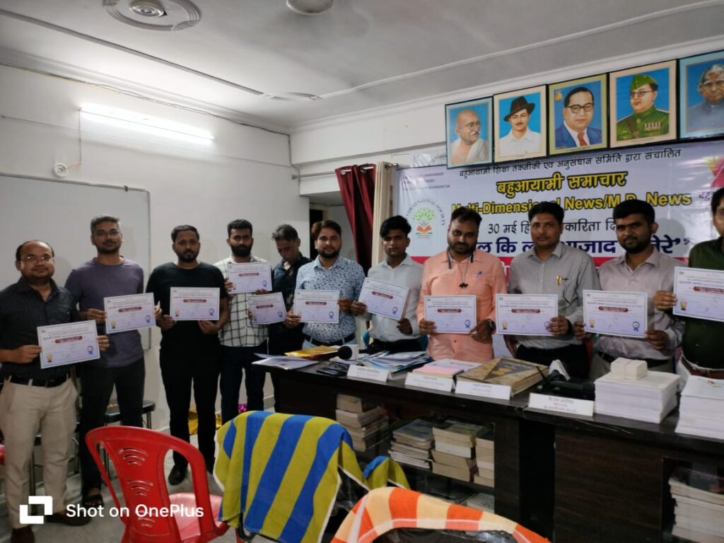 हिंदी पत्रकारिता दिवस के अवसर पर बहुआयामी संस्था के द्वारा पत्रकारिता समाधान पत्रिका तथा पत्रकारिता प्रमाण पत्र से पत्रकारों को किया गया सम्मानित