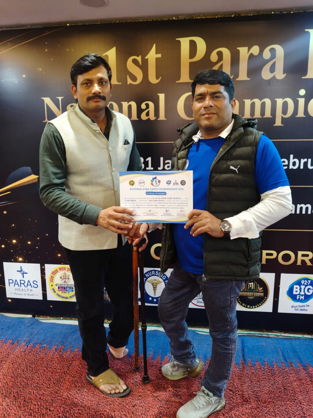 इंडियन डिसएबिलिटी डार्ट्स एसोसिएशन द्वारा आयोजित राष्ट्रीय स्तरीय पैरा डार्ट्स चैंपियनशिप 2026, जो दिनांक 31 जनवरी एवं 1 फरवरी 2026 को कानपुर (उत्तर प्रदेश) में संपन्न हुई, में डॉ. दीपक कुमार त्रिपाठी ने उत्तर प्रदेश का प्रतिनिधित्व करते हुए उत्कृष्ट एवं प्रभावशाली प्रदर्शन किया। इस प्रतिष्ठित प्रतियोगिता में देशभर से 120 से अधिक दिव्यांग खिलाड़ियों ने प्रतिभाग किया, जहाँ डॉ. त्रिपाठी ने अपने कौशल, एकाग्रता और अनुशासन से सभी का ध्यान आकर्षित किया।
