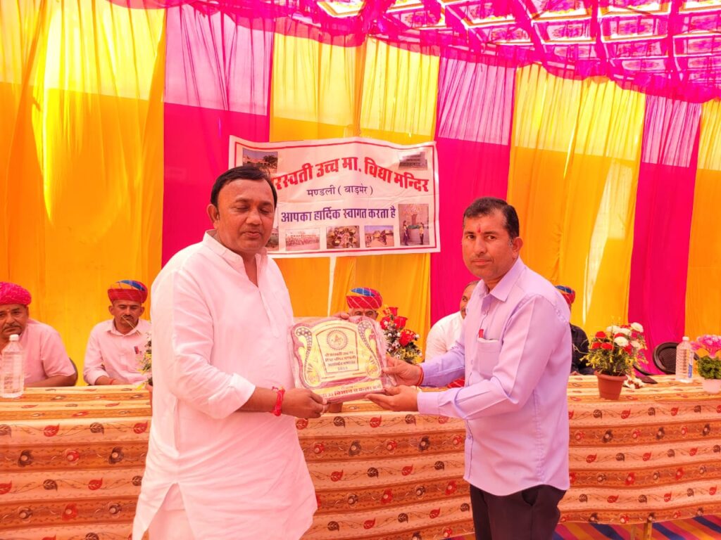 भाजपा प्रदेश कार्य समिति सदस्य गणपत बांठिया ने आज शुक्रवार को मंडली,रावली ढाणी, सांखलो की ढाणी, कोरणा, कांकराला, खारवा, भांडियावास,थोब सहित अनेको गांवो में आयोजित सामाजिक व धार्मिक कार्यक्रमों में लिया भाग, बांठिया ने कार्यकर्ताओं के साथ बैठक कर क्षेत्र की विभिन्न समस्याओं के बारे में की चर्चा, सरस्वती उच्च माध्यमिक विद्या मंदिर मंडली में आयोजित वार्षिकोत्सव में बांठिया ने बतौर मुख्यअतिथि लिया भाग विद्यार्थियों को सम्बोधित करते हुए बांठिया ने कहा कि लक्ष्य तय करके ही विद्यार्थियों को अपनी पढ़ाई करनी चाहिए,जिसका लक्ष्य निर्धारित नहीं होता उसको मंजिल भी नहीं मिलती, लक्ष्य के साथ कठिन परिश्रम कर शिक्षा ग्रहण करेंगे तो सफलता अवश्य मिलेगी बांठिया ने विधार्थियों को संबोधित करते हुए कहा कि शिक्षा की इंसान के जीवन मे बहुत अहमियत होती है मनुष्य के जीवन का सर्वांगीण विकास शिक्षा है। अगर जीवन मे आगे बढ़ने के लिए कुछ बनना है, तो शिक्षा भी जरूरी है। वर्तमान समय मे शिक्षा से ही समाज और राष्ट्र का विकास हो सकता है, किसी भी समाज का विकास उसकी शिक्षा, संस्कार और रोजगार पर निर्भर करता है। इस अवसर पर विद्यालय परिवार ने बाठिया को साफा पहना माल्यापर्ण कर स्वागत किया गया, इस दौरान बांठिया ने भाजपा कार्यकर्ताओं के साथ बैठक कर क्षेत्रीय समस्याओं के बारे में की चर्चा, बांठिया ने कार्यकर्ताओं से चर्चा के दौरान कहा कि वर्तमान राज्य की कांग्रेस सरकार से जनता को कोई अपेक्षा नही रही सभी कार्यकर्ता आगामी चुनावों की तैयारियों में अभी से जुट जाएं। उबांठिया ने कोरणा में तगसिंह राजपुरोहित के यहां आयोजित सामाजिक कार्यक्रम में भी लिया भाग इस दौरान ढाणी सांखला सरपंच मेहताब करण, मंडली भाजपा मंडल अध्यक्ष बनाराम जाणी,परालिया सरपंच हनुमान सिंह राजपुरोहित,भाजपा नेता मनोहर लाल दवे,सोहन सिंह, ओम