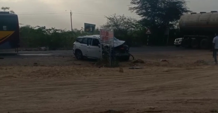 बालोतरा बाईपास पर कार व टैंकर में हुई भीषण भिड़ंत में