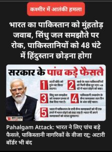 भारत सरकार के पाकिस्तान को लेकर 5 महत्वपूर्ण फैसले 1- 1960 की सिंधु जल संधि को तत्काल प्रभाव से स्थगित...