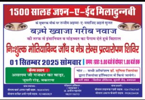 मकराना 30अगस्त कुचामन डिडवाना (नागौर ) जिले के मकराना सिटी मे 1.9.20025 को आँखो का निशुल्क केंम्प रखा गया है....