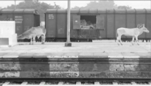 बाउंड्री न होने से नंदगंज रेलवे स्टेशन के प्लेटफार्म पर घूम रहे आवारा पशु A i N भारत आबिद शमीम...
