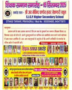 एस जे जी पी हायर सेकेंडरी स्कूल, ओडगी, तरहार, प्रयागराज में 5 सितंबर को शिक्षक दिवस के अवसर पर सम्मान...