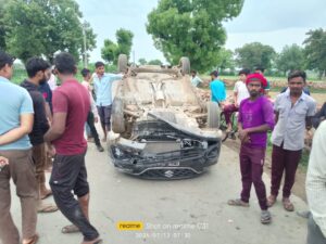 बारा प्रयागराज धरा चौराहा से 300मीटर लालापुर मार्ग रोड पर अज्ञात चारपहिया वाहन पलटीं है Ain भारत न्यूज़ संवाददाता विधा...