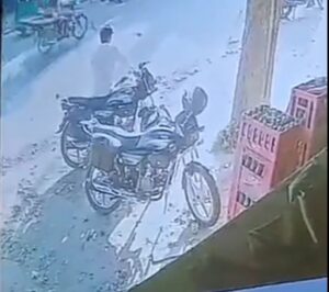 प्रयागराज में चौराहे पर दिनदहाड़े बाइक चोरी:मिठाई की दुकान के बाहर खड़ी थी, सीसीटीवी में कैद हुई वारदात। AiN...
