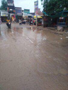 नंदगंज के चोचकपुर मोड़ से कुछ माह पहले बनी सी सी रोड पर बरसात होते ही लगा पानी, राहगीरों आवागमन...