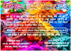 विजय दिवस एवं होली मिलन समारोह 10 मार्च को AiN भारत न्यूज़ ब्यूरो रिपोर्ट प्रयागराज बारा प्रयागराज।...